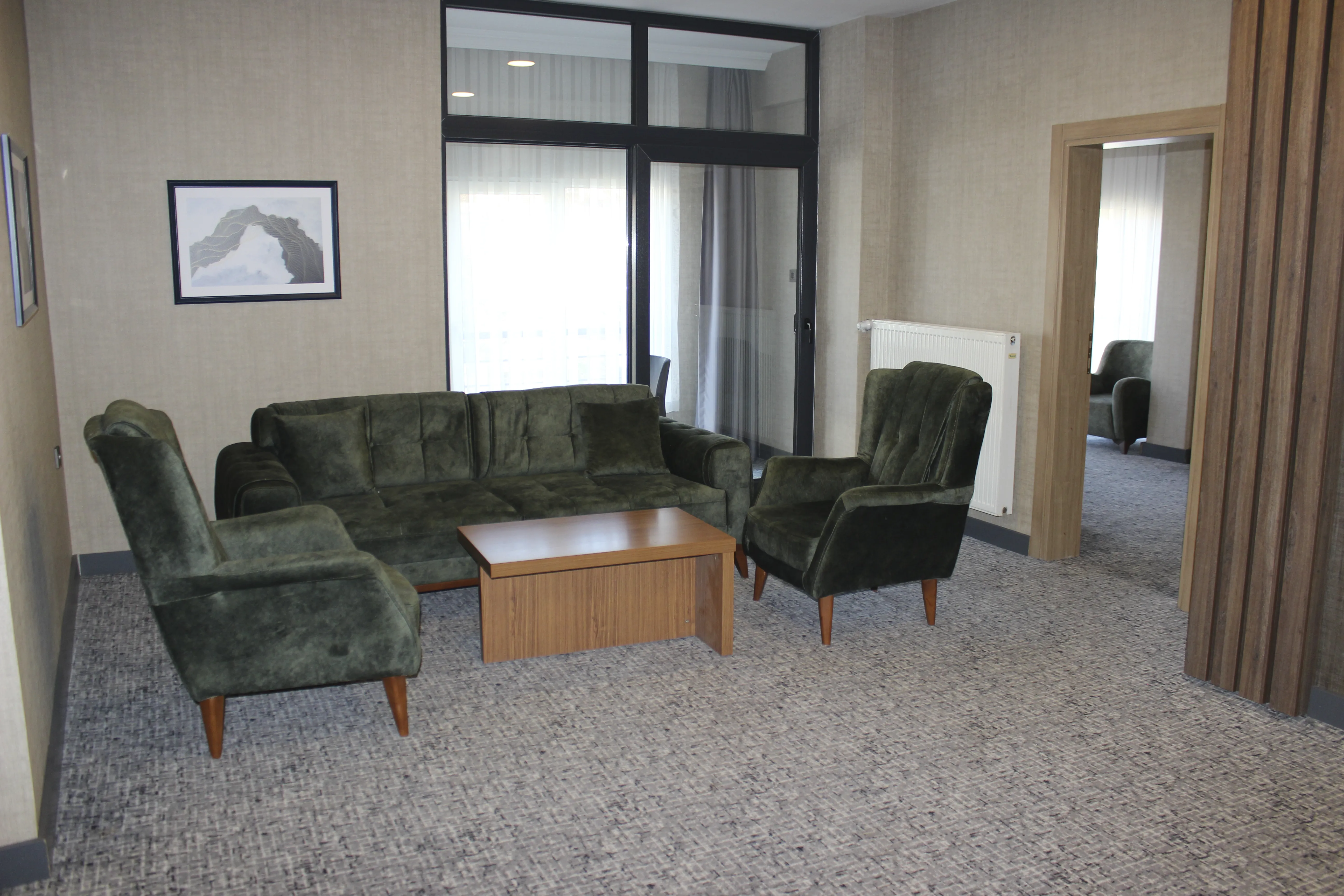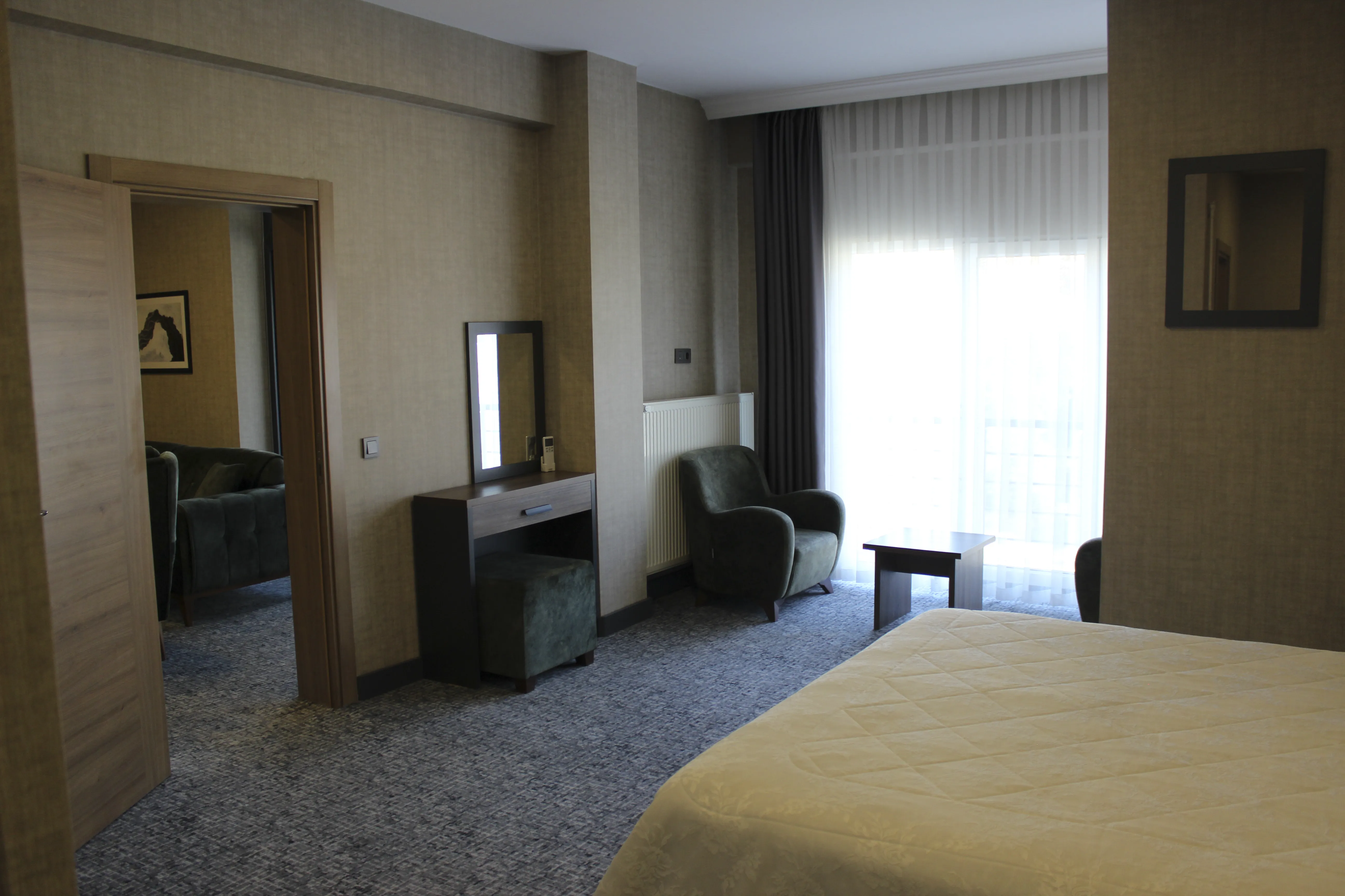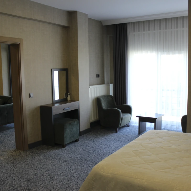 Şıklığı, genişliği ve fonksiyonelliği bir arada barındıran Suit Odamız; hem kısa süreli hem de uzun süreli konaklamalar için kusursuz bir tercih olacaktır.