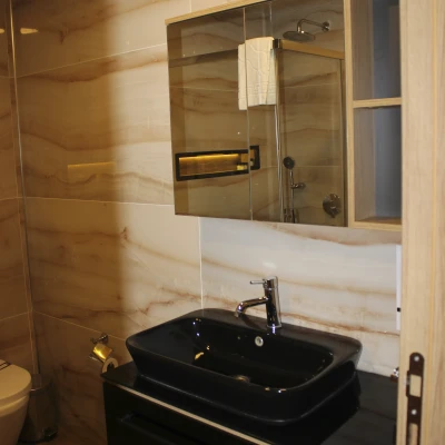 Rahat yatak odası, geniş giyinme alanı ve modern banyosuyla Suit Odamız, günün yorgunluğunu en iyi şekilde atmanızı sağlar. Ferah ve şık banyo alanı, konforlu bir hazırlık ve yenilenme deneyimi sunar.